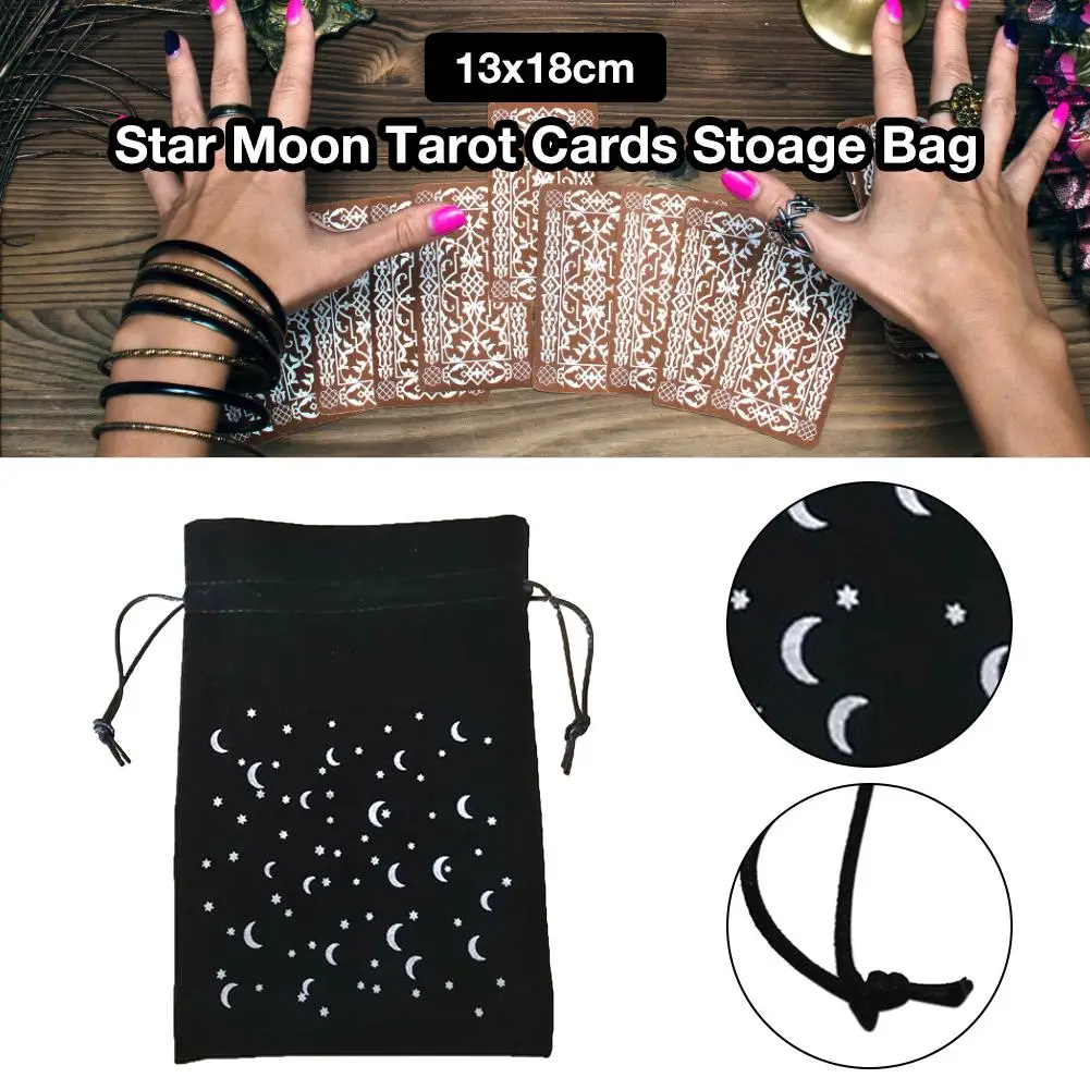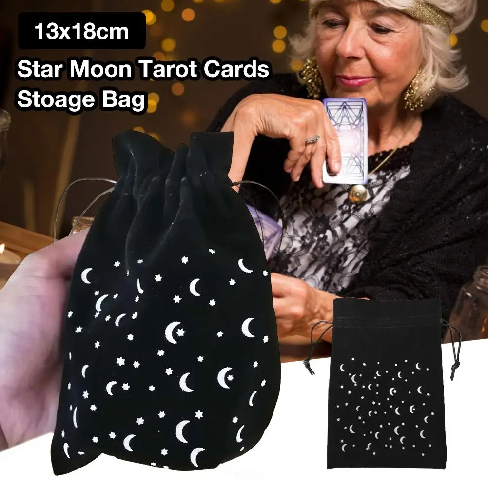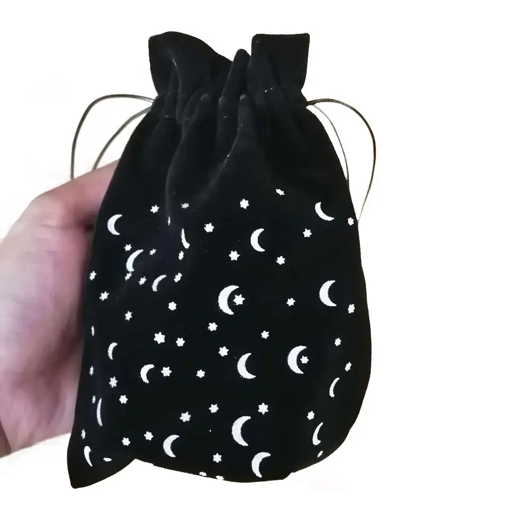 1pc Velvet Moon Pattern Tarot Storage Bag Board Game Card Embroidery Drawstring Package