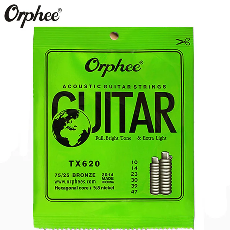 Orphee TX620 010-047 Acoustic Guitar Strings Hexagonal core+8% nickel Bronze Bright tone Extra light guitar Accessories